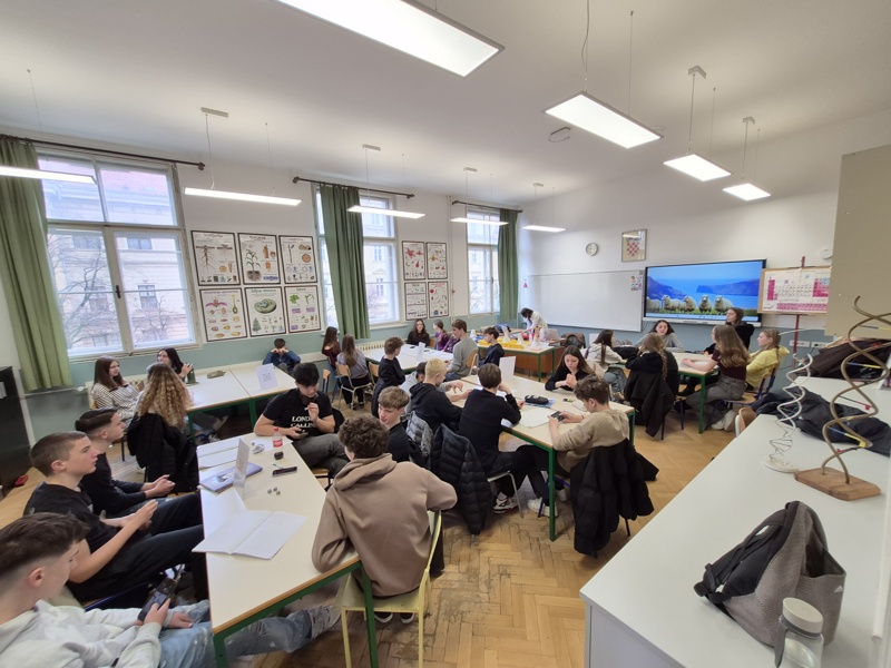Dijaki drugega letnika skupine Hrana za prihodnost smo se v okviru projekta Erasmus+ odpravili v Zagreb, kjer smo v sodelovanju s V. gimnazijo raziskovali tematiko trajnostne prehrane. Skozi različne aktivnosti smo spoznavali, kako naše prehranske izbire vplivajo na okolje ter kakšna je prihodnost prehrane.