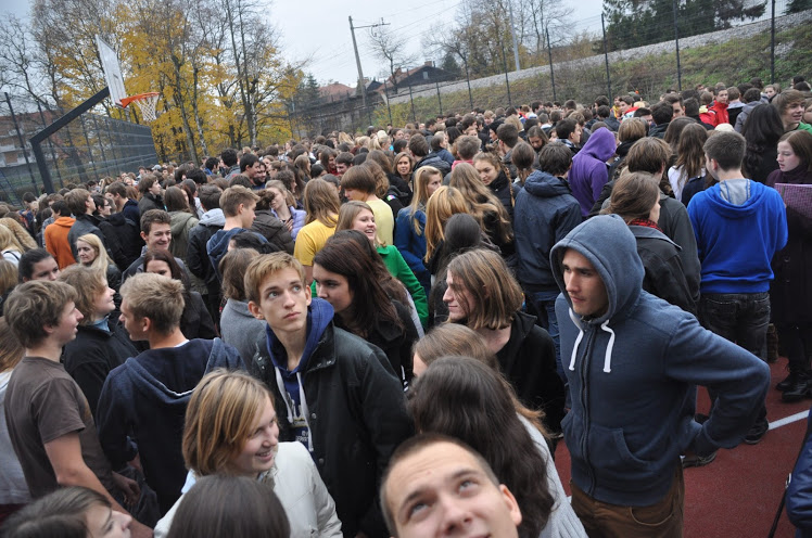 V petek, 16. 11. 2012, smo na Gimnaziji Vič izvedli evakuacijsko vajo. Preizkusili smo, če zmoremo izprazniti šolo tako hitro kot prejšnja leta, kljub temu, da od jesenskih počitnic naprej uporabljamo tudi novi del šole. Izkazalo se je, da čas izpraznitve šole ostaja enak. Tudi novo odbojkarsko igrišče za veliko telovadnico se je izkazalo za dovolj veliko, da sprejme vse dijake naše šole, če bi bilo potrebno.