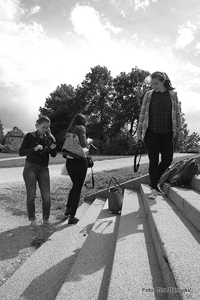 S puncami smo se za zadnji dan fotografskega tečaja odpravile v sončni Tivoli raziskovati fotogenične motive, vaditi osvetlitev s časom zaklopa, kompozicijo in zlati rez ter globinsko ostrino. Tanjo in Doris sta navdušila črni višavski terier in mešanček, Urša pa je vadila globinsko ostrino. Kolesarji in motorist so nam bili hvaležen moti, ko smo nadzorovale gibanje s pomočjo časa zaklopa.