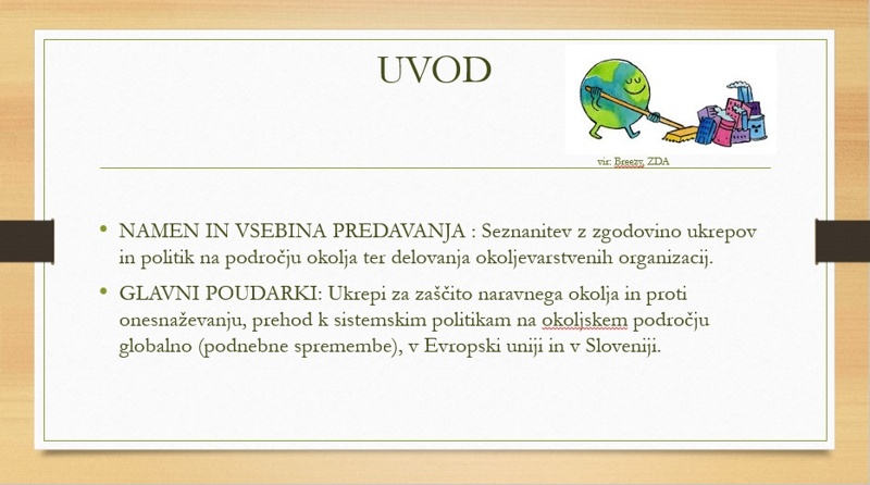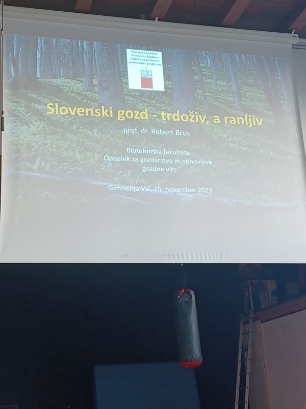 Za dijake 1.a, 1.c, 1.f (Sonja Artač), 2.a in 2.e (Maja Gerden) sta bili v okviru medrazrednega povezovanja na temo globalnih podnebnih sprememb, organizirani predavanji: Ambicije okoljskih politik, dr. Tomaž Gerden in Slovenski gozd - trdoživ, a ranljiv, prof.dr. Robert Brus.