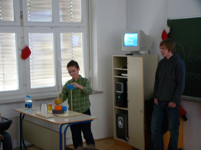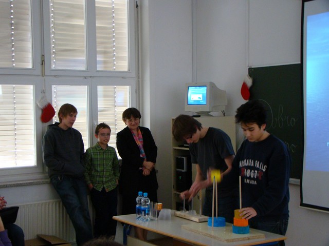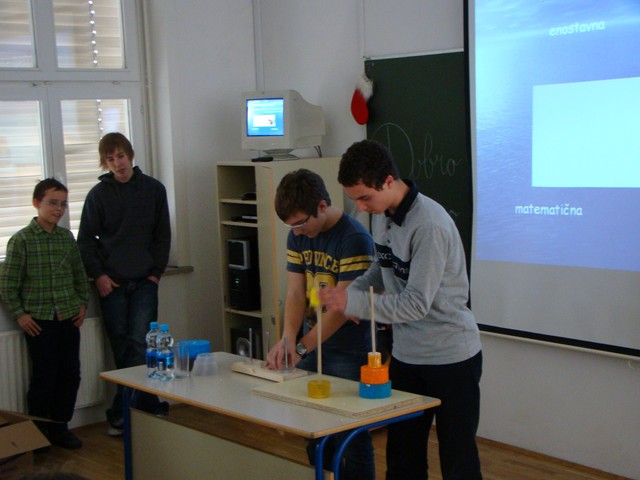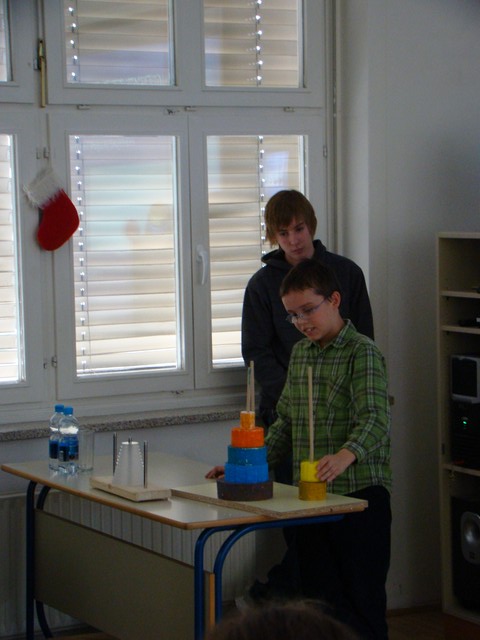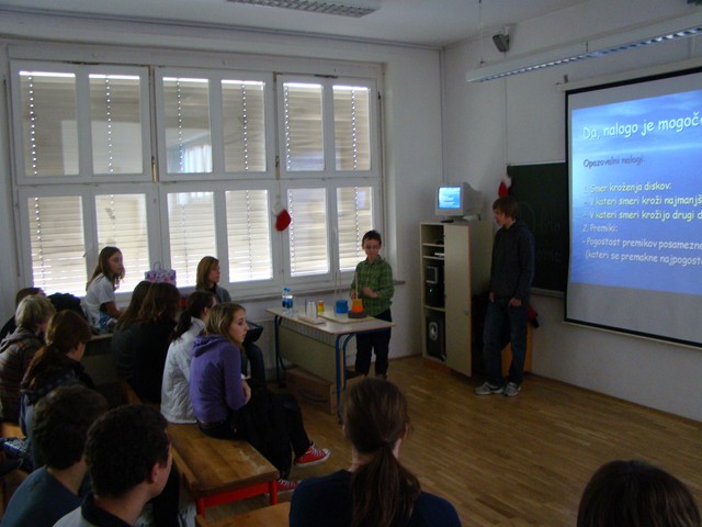Dva učenca, Samo Kralj in Aljaž Gorjup, sta dijakom naše šole predstavila svojo raziskovalno nalogo o Hanojskih stolpih, s katero sta v šolskem letu 2008/09 dosegla zlato priznanje na tekmovanju mladih raziskovalcev Slovenije.