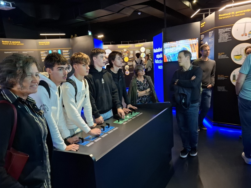 Ob predavanju o jedrskih elektrarnah so raziskovali tudi interaktivno razstavo, se preizkusili na simulatorju elektrarne in spoznali delovanje reaktorja iz Krškega. Poučen in dinamičen obisk je dijakom približal svet jedrske energije v praksi.