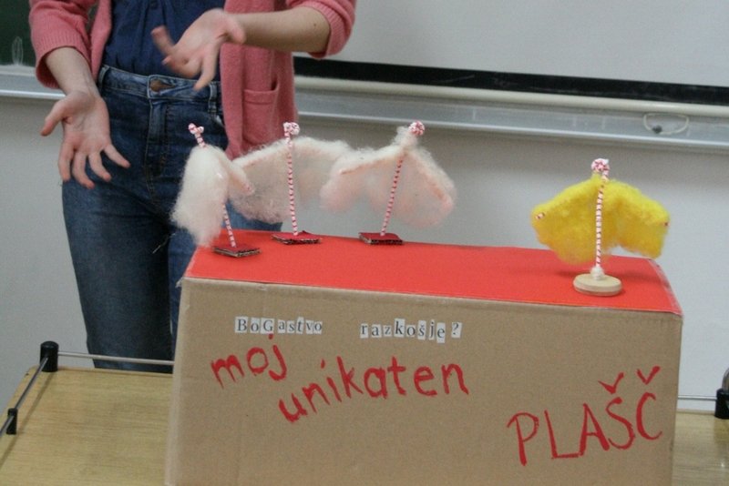 Spoznavanje konstruktivizma kot literarne zvrsti pri slovenskem jeziku so nadgradili skozi ustvarjalno delo. Iz pesniške zbirke Integrali Srečka Kosovela so dijaki izbrali dve pesmi. Eno so nato upodobili v različnih materialih: papirju, nespredeni volni, kartonu, žici …