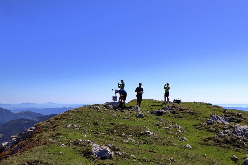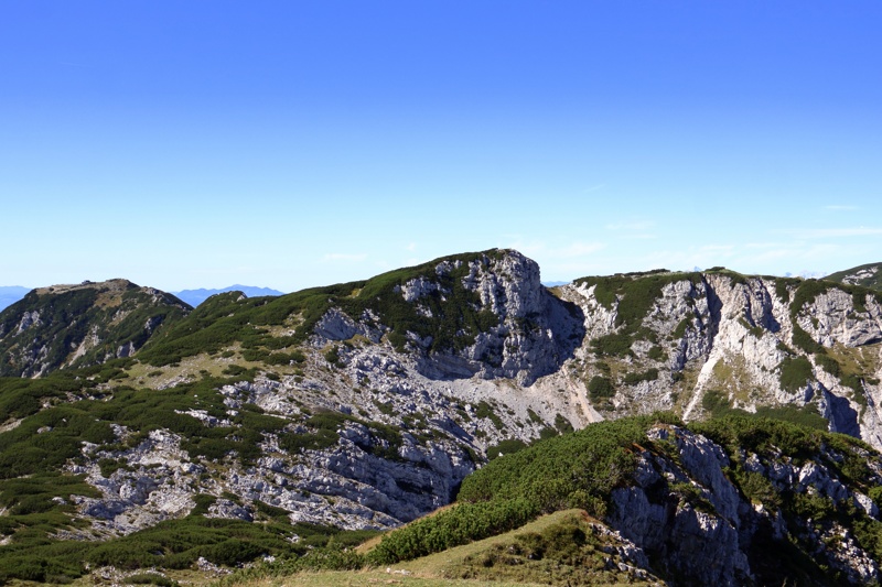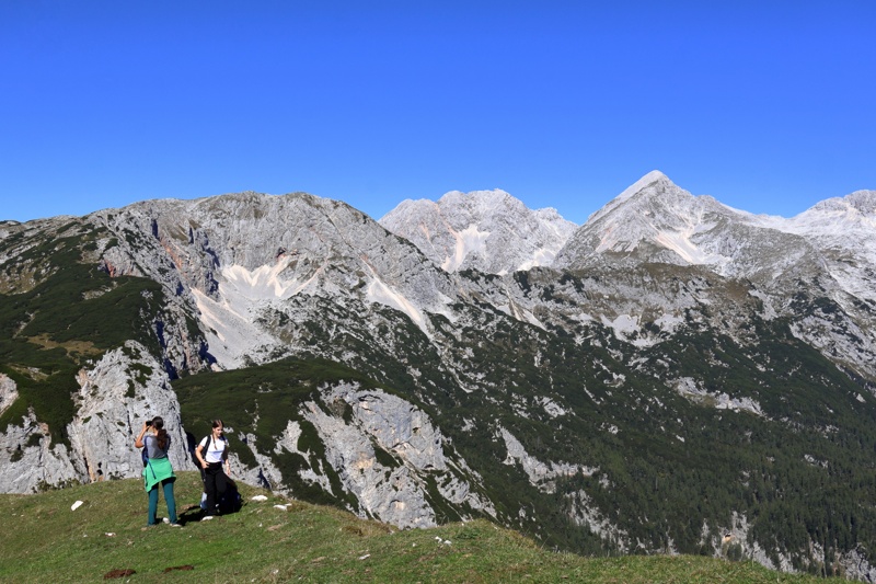 Imeli smo popolno planinsko kuliso – jasen dan brez oblačka in razglede, ki so segali na vse strani. V daljavi se je razkazoval Triglav nad ostalimi vrhovi v Julijskih Alpah, kot na dlani pa smo videli Kočno, Grintovec, Dolgi hrbet, Štruco, Skuto in vse ostale vrhove do Kamniškega sedla in naprej.