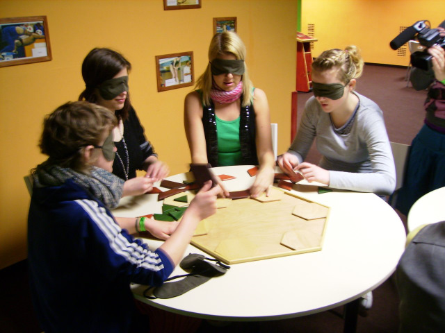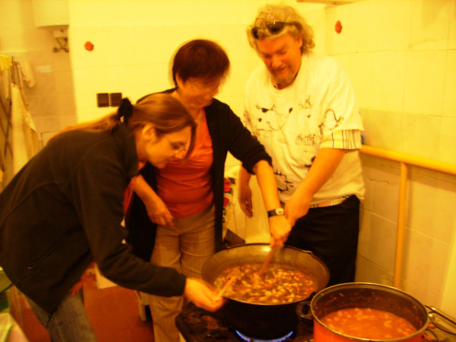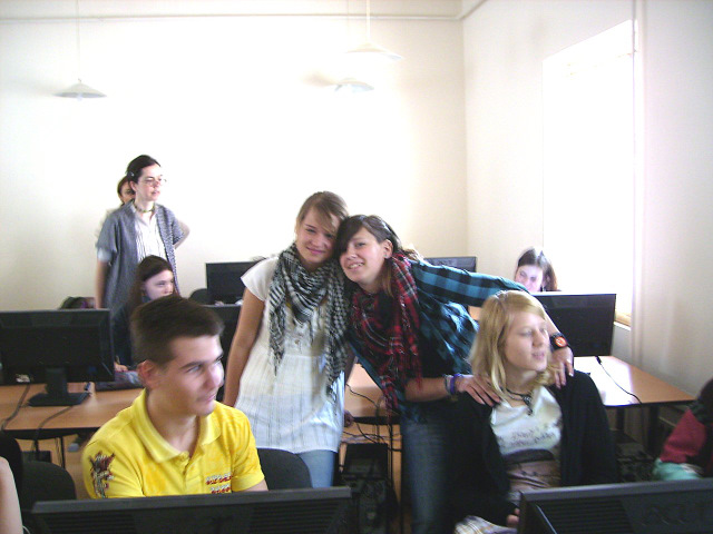 Danes dopoldne pa smo v Ability centru spoznavali, kakšen je svet ljudi,ki nimajo takšne sreče kot jo imamo sami. V popolnoma črni sobi smo iskali predmete s prizorišča zločina, sporazumevali smo se z govorico gluhih, napisali smo svoje ime v Braillovi pisavi ter se preiskusili v vožnji z invalidskimi vozički. Kako smo bili pri tem uspešni, si lahko ogledate na slikah! Izkoristili smo še zadnje trenutke za nakupe in poiskušnjo madžarskih specialitet (ali pa pic in hamburgerjev). Počasi pa se spet odpravljamo v šolo, kjer bomo imeli poslovilno zabavo ob kuhanju golaža (ali bomo kurili žar, tega še ne vemo). Ker je danes dan zemlje, je zvčer v mestnem parku koncert. Upamo, da se ga bomo lahko udeležili! Tole je najbrž naše zadnje javljanje. Jutri praznuje šola gostiteljev rojstni dan, ki pa ga bomo počastili le s kratkim obiskom, saj že ob devetih prihaja po nas avtobus! Torej še zadnje pozdrave iz Budimpešte!