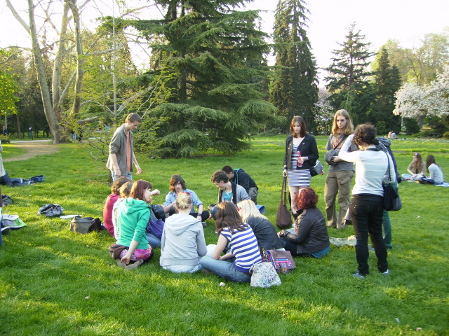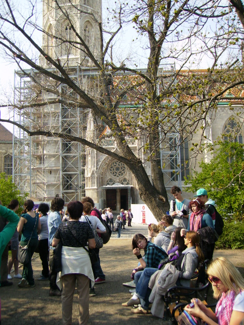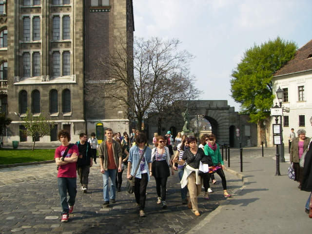 Pustili so nam, da se malo odpočijemo, sestali smo se ob 9. uri v šoli. Šola je zanimiva od kleti do podstrešja, kot neka mala Bradavičarka. Najbolj nam je vseč bife v kleti, kjer prodajajo vsakovrstno hrano (spet) in dobro kavico (200 forintov). Tudi pri nas bi lahko imeli tak bife … Sicer pa je šola zanimiva tudi s strani programa, ki ga izvajajo. Ta je drugačen kot na drugih, državnih šolah, za šolanje na tej šoli je potrebno plašilo. Vpisani dijaki se lahko udejstvujejo predvsem bolj v umetniških dejavnostih, videli smo nekaj zanimivih filmov, ki so jih posneli v enem od njihovih umetniških festivalov. Imajo tudi zanimive športne dejavnosti – ravnokar so se vrnili s kolesarskega vikenda – kolesarili so do Blatnega jezera, tam preživeli dva dni in odkolesarili nazaj (če pogledamo po zemljevidu, je do tja kakih 100 km). Več o šoli najdete na njihovi spletni strani: www.poli.hu. Torej, dobili smo se zjutraj v šoli in izmenjali vtise. Po kratki predstavitvi mesta in šole s strani dijakov (pridružil se nam je eden od udeležencev lanske izmenjave, ki je bil ze pri nas) smo se lotili dela. Že prej smo v obeh skupinah zbrali vprašanja, ki se nanašajo na življenje naših staršev in starih staršev v prejšnjem (socialisticnem) režimu. Zdaj smo v mešanih skupinicah sestavili anketne vprašalnike in z njimi odšli anketirat. Naše “žrtve” so bili predvsem učitelji na šoli, povprašali pa smo tudi nekaj mimoidočih. Spraševali so jih pravzaprav naši gostitelji v madžarščini, nato pa smo skupaj prevedli odgovore. Enako bomo naredili tudi na drugem delu izmenjave, v Sloveniji, potem pa bomo ugotovitve primerjali med seboj. Po kosilu v šoli smo se odpravili na ogled najlepših predelov Budimpešte – Gradu, Matjaževe cerkve in starega predela mesta z galerijami in umetniškimi trgovinicami. Dijaki smo nato sami (v mešanih skupinah) raziskovali različne predele mesta, s pomočjo zemljevida in nalog, ki jih je pripravila gostiteljica Edina. Nekatere so bile prav zakomplicirane, saj tudi naši madžarski gostitelji niso poznali odgovorov. Smo se pa dobro znašli – pomagal nam je vsevedni Google. Zborno mesto, kjer smo poročali o opravljenih nalogah, je bilo na Margaretinem otoku. To je velik otok sredi Donave, s prekrasnim parkom in vsemi mogočimi možnostmi za športno (tek, kolesarjenje, atletika, bazen …), kulturno (koncerti, …) in zabavno udejstvovanje. No, mi smo tam samo uživali, nekateri smo si ogledali še razvaline srednjeveškega samostana in mali živalski vrt. Večer smo preživeli v družbi novih prijateljev, življenje z njimi se odvija vsak dan bolj zabavno.