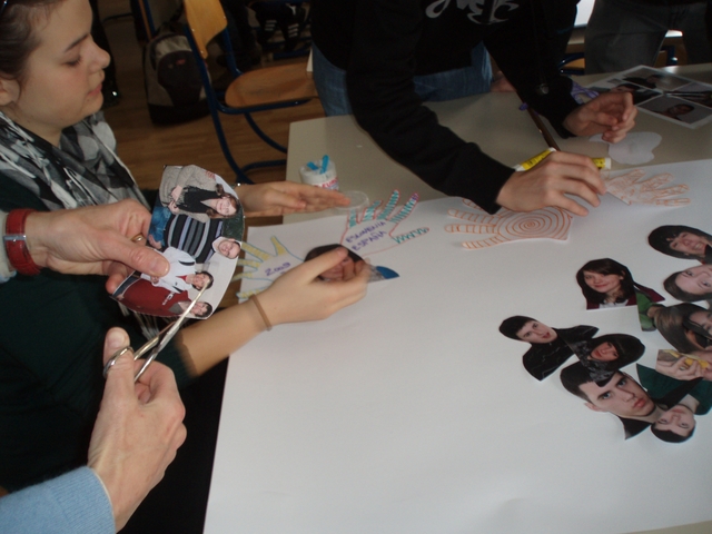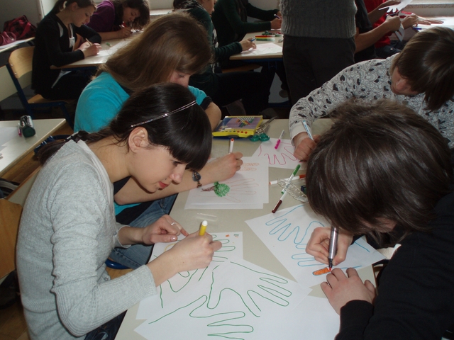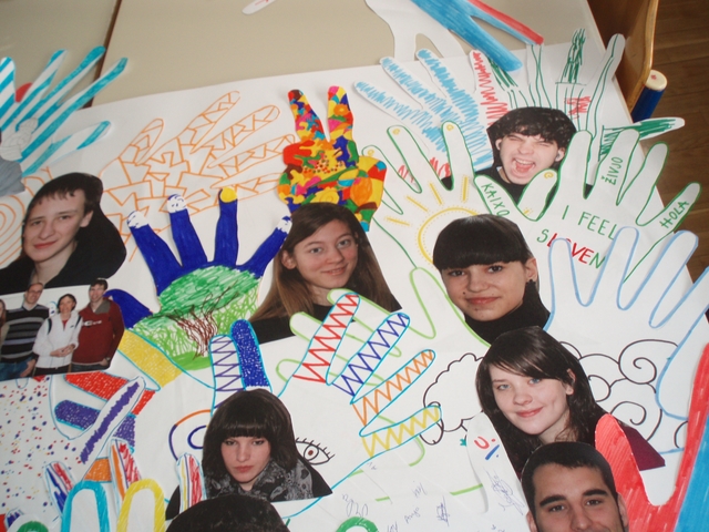 V četrtek smo v šoli likovno ustvarjali. Izdelovali smo plakate, na katere smo lepili naše fotografije in obrise dlani, ki jih je vsak po svoje okrasil. Pri tem je nastalo nekaj resnično zanimivih in lepih risb, ki predstavljajo naše druženje in prijateljstvo.