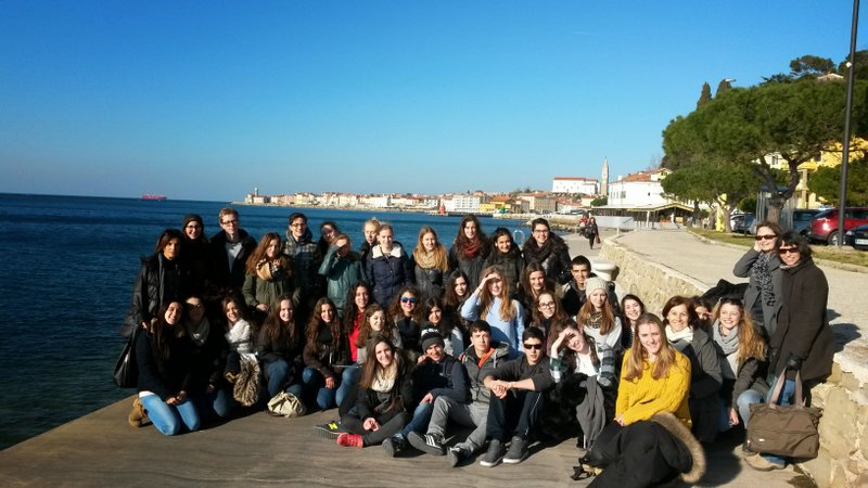 18 dijakov in 2 profesorici so z nami ustvarjali plakate na temo sožitje, spoznavali našo šolo, šolski sistem, pripravljali gibanico, bili z nami pri iskanju zaklada v Ljubljani, se sankali, občudovali lepote Bleda, Pirana, Škocjanskih jam …