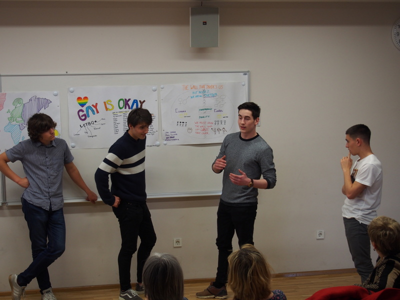 Prvi del se je odvijal v Sloveniji v mesecu marcu. Rdeča nit je bila tema o beguncih in o ohranjanju etničnih manjšin. Dijaki so se seznanjali s problematiko v razgovorih in diskusijah. Zaključke pa so predstavili s plakati. Poleg te dejavnosti so imeli tudi športne tekme, improvizacijski teater , izdelovanje lectovih src in kulinarično delavnico. V skupinah so odkrivali zanimivosti Ljubljane ob reševanju nalog, šli na ogled živalskega vrta, se ñudili v Muyeju iluzij, jedli kremno rezino na Bledu, se sankali na Krvavcu, se predali čarobnosti Škocjanskih jam in se dotaknili morja v Piranu.