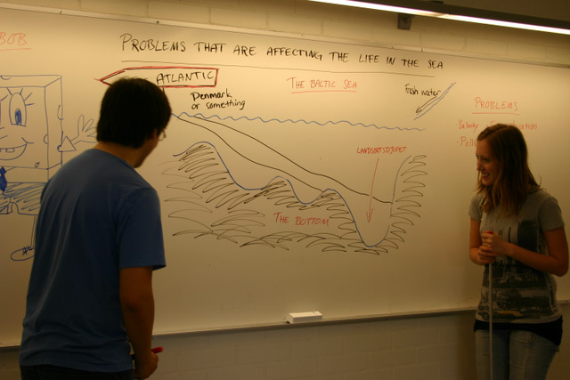 V začetku maja so nas obiskali dijaki, ki smo si jih izbrali na podlagi predstavitvenih posnetkov, iz katerih smo se poučili, kako jim je ime, kaj radi počnejo, kje živijo in česa ne smejo jesti. Ko smo se prvič srečali na letališču Jožeta Pučnika, je prevladala vsesplošna naklonjenost. 'Naši' Švedi so nadvse simpatična, skulirana in vedoželjna množica. Vsi smo se dobro ujeli in skupaj preživeli zabaven t.i. družinski vikend, potem pa se je začelo delo. Vsaka skupina, sestavljena iz nekaj Švedov in nekaj Slovencev, se je ukvarjala s svojo ekološko temo. Teoretično delo je bilo podkrepljeno z obiskom Pirana (zanimala nas je predvsem obalna problematika) ter zaokroženo s kratko predstavitvijo za starše in skromno zakusko. Da se Švedi ne bi utopili v raziskovalnem delu (tako zelo vedoželjni vendarle niso bili), smo zvečer občudovali lepote Ljubljane in Pirana. Ko so nas po uspešnem tednu zapuščali, smo se le s težavo poslovili od njih in komaj čakali na september, ko je bila vrsta na nas, da vrnemo obisk. Veselje ob ponovnem snidenju je bilo veliko, poleg tega pa nas je prevzemalo navdušenje nad veliko, strpno, demokratično, predvolilno razpoloženo ŠVEDSKO. Družine, pri katerih smo bivali, so nas toplo sprejele. Vseeno pa nismo imeli prav veliko časa, da bi jih bolje spoznali, saj smo že naslednji dan odpluli na Gotland, otok v Baltskem morju, sicer priljubljeno turistično destinacijo, kjer je potekal drugi del naših raziskav. Hkrati z ogledi in skupinskim delom smo spoznavali švedsko kulturo ter občudovali prelepo naravo. Večino dela smo končali že na Gotlandu, zato nas je, ko smo se vrnili v Stockholm, čakalo le še snemanje kratkega predstavitvenega filma. Izdelki so bili različni: od ppt projekcij do parodije na predstavitveni film gimazije Ava, od risanih filmov do raziskovanja problematike življenjskega okolja ubogega Spongeboba. Vsi pa so očarali publiko, ki so jo sestavljale naše gostiteljske družine. Sledila je ne-tako-zelo-skromna zakuska, v katero so Švedi zares vložili veliko dela. Postregli smo si lahko s kaviarjem in morskimi jedmi, tradicionalnimi krompirjevimi jedmi in podobnim.
