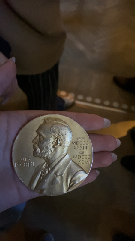 V petek zjutraj smo se zbrali na želežniški postaji-Blackeberg, ter se odpejali do starega dela mesta. Začeli smo z ogledom muzeja Nobelovih nagrad. Spoznal smo življenje Alfreda Nobela in zgodovino nobelove nagrade. Ogledali pa smo si tudi predmete, katere so nobelovi nagrajenci donirali muzeju. Sprehodili smo se po starem jedru mesta ter si ogledali cerkev. Za kosilo smo se odpravili nazaj v šolo in po kratkem premoru nadaljevali s programom. Po kosilu je sledilo predavanje Alasdira Skeltona, profesorja univerze v Štokholmu. Nato smo po skupinah pripravili predstavitve tem, ki smo si jih nato tudi ogledali. Po predstavitvah je sledila pogostija s picami ter druženje s švedskimi dijaki.