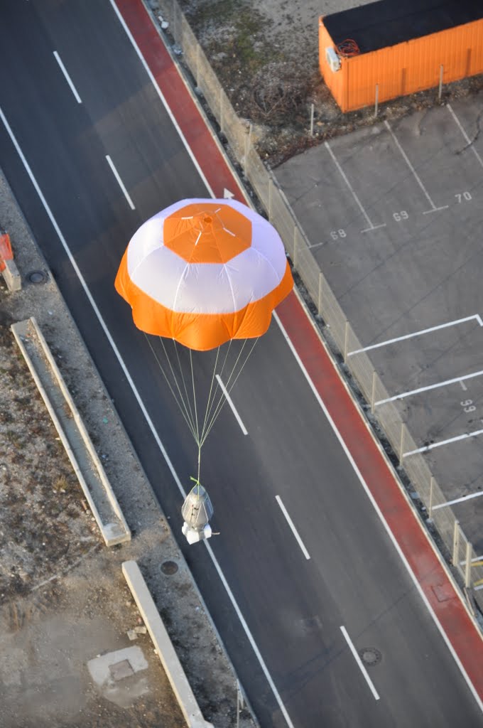 Izvedli so še en, ključen poskus pred finalnim dejanjem: testno so spustili sondo s skoraj 100 m visoke Kristalne palače in pri tem preizkusili delovanje padala, senzorjev, kamer in trdnost sonde.