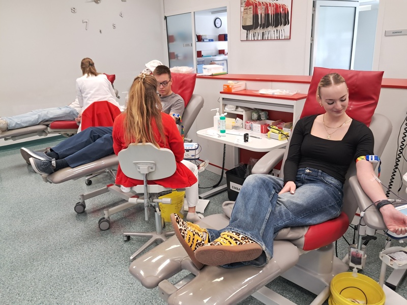 30 polnoletnih dijakov je špricalo šolo, saj so danes prvič darovali kri. Ker so ugotovili, da izkušnja ni prav nič grozna ali boleča (in da ponudijo tudi zelo dobro malico), so se vsi strinjali, da se bodo tudi po koncu srednje šole še kdaj srečali na kateri izmed krvodajalskih akcij!