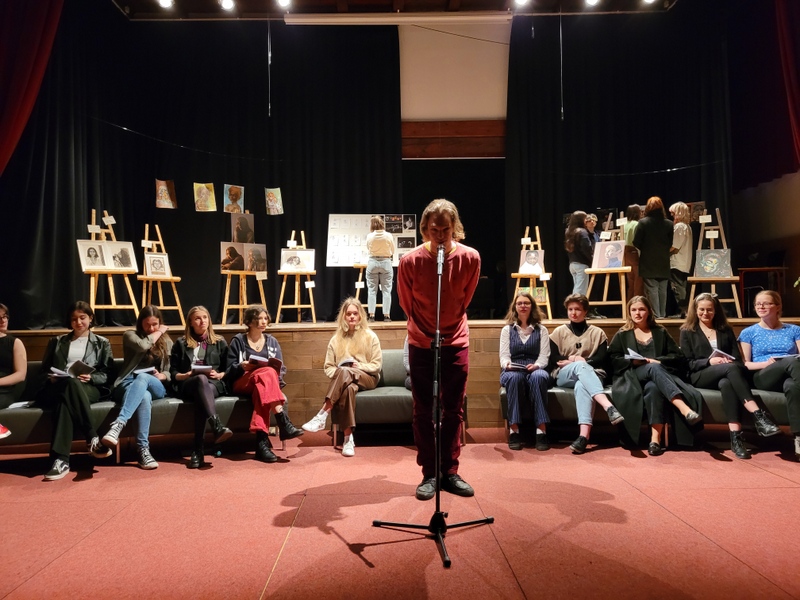 Prebirali smo dela znanih pesnic in pisateljic, s svojo avtorsko poezijo in prozo pa so se lahko predstavili tudi dijaki in dijakinje, člani profesorskega zbora in ostali obiskovalci. Literarni večer je otvorila razstava vizualnih umetniških del dijakinj in dijakov.