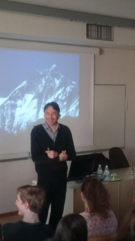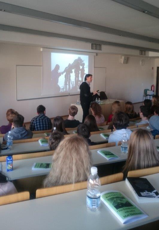 V ponedeljek, 7. decembra 2015, je angleški knjižni klub na Gimnaziji Vič gostil dva eminentna britanska gosta iz sveta književnosti. Ruth Eastham, priznana in večkrat nagrajena mladinska pisateljica, ki nas je na našo pobudo obiskala že ob obeležitvi svetovne noči knjige v aprilu 2015, nam je tokrat pomagala navezati stike z Mattom Dickinsonom in se tudi sama odzvala našemu vabilu. Vrhunec srečanja je bila predstavitev Matta Dickinsona, avtorja mladinske literature, alpinista, popotnika in sodelavca televizijskih hiš BBC, National Geographic in Discovery Channel na področju dokumentarnega programa. Popeljal nas je skozi svoja doživetja ob vzponu na Mount Everest in nam predstavil svet pisateljevanja ter dokumentarnega filma. Avtorjeva dostopnost in izjemen smisel za humor pa sta srečanju pridodala še prav poseben čar.