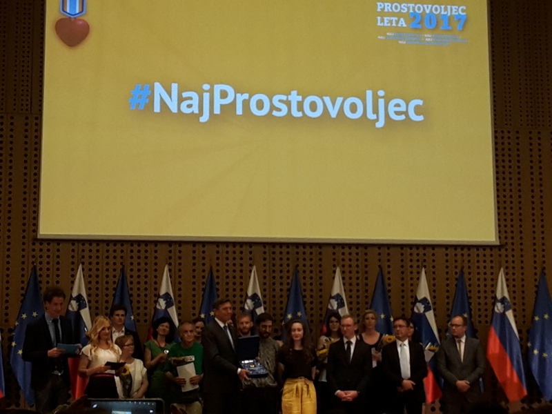 V ponedeljek, 4.6.2018 je na Brdu pri Kranju potekala zaključna prireditev natečaja Prostovoljec leta 2017, ki ga je že šestnajstič pripravil Mladinski svet Slovenije in sprejel Predsednik Republike Slovenije Borut Pahor.