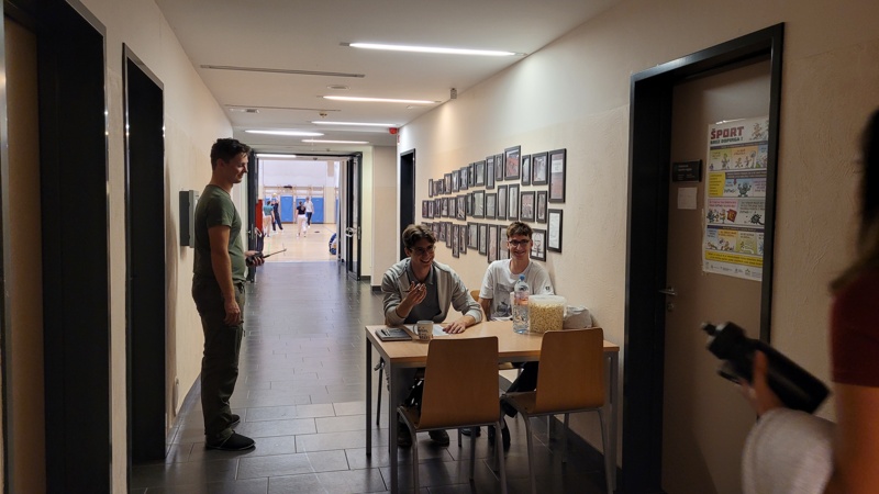 Vhod na dogodek je bil od 20.00 do 22.00 skozi vrata pri parkirišču, kjer je eden od profesorjev pregledoval, če so vsi prisotni res bili prijavljeni in s tem zagotovil dobro in varno vzdušje na dogodku. Člani dijaške skupnosti nismo mogli pustiti dijakov brez energije, tako smo imeli čez cel dogodek na voljo zastonj hrano in pijačo. Žejo si si lahko oddahnil z raznimi sokovi, super čajem ali vodi. Za lakoto pa so bili na voljo topli sendviči, palačinke s čokolado ali marmelado, piškoti in seveda kokice, brez katerih ob filmu ne bi šlo. Vse to je bilo dijakom na voljo brezplačno, lahko pa so pustili prostovoljne prispevke.