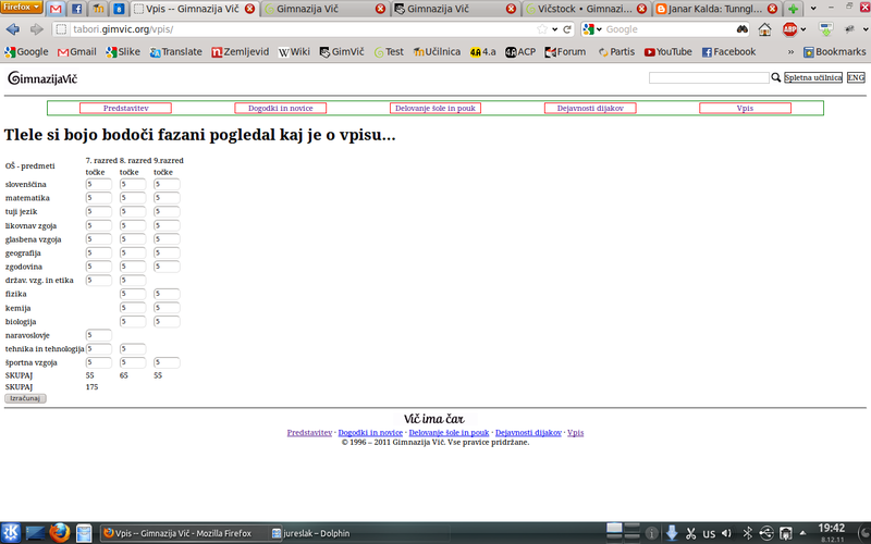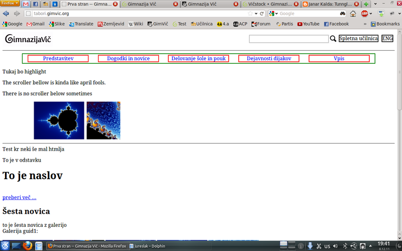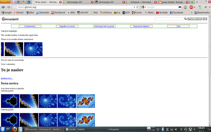 Naša ekipa je dokončala celo stran brez grafične podobe in vsebine, naredili smo podporo za dodajanje novic, obvestil, dogodkov, ustvarili bazo vseh zaposlenih, dodali podporo za več galerij in se malo poigravali z JavaSriptom za lepe efekte. Aljaž Borštnik je poskrbel za administracijo strežnika in postavil stran na naslov test.gimvic.org. Jaz pa sem sprogramiral celotno stran, jo pretestiral, jo več kot 100-krat sesul in ponovno popravil in na koncu so vse stvari delale tako, kot morajo.