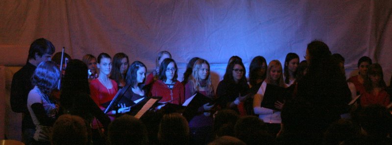 Člani šolskega pevskega zbora, orkestra in ŠILE so skupaj z zborovodkinjo dr. Marijo Mihevc pripravili za dijake, starše in profesorje imenitno božično novoletno prireditev. Za pravljično kuliso in zakritje gradbišča na odru je poskrbela profesorica Tadeja Rudolf. Letošnja tema prireditve z lepimi željami so bili božično-novoletni običaji dežel, katerih jezike se učijo naši dijaki. Prepevali so v angleščini, nemščini, španščini, italijanščini in francoščini. Za bolj plastični prikaz običajev so poskrbeli ŠILArji, vse skupaj pa sta simpatično povezovala in v predstavo vključevala tudi gledalce dijaka prvega letnika.