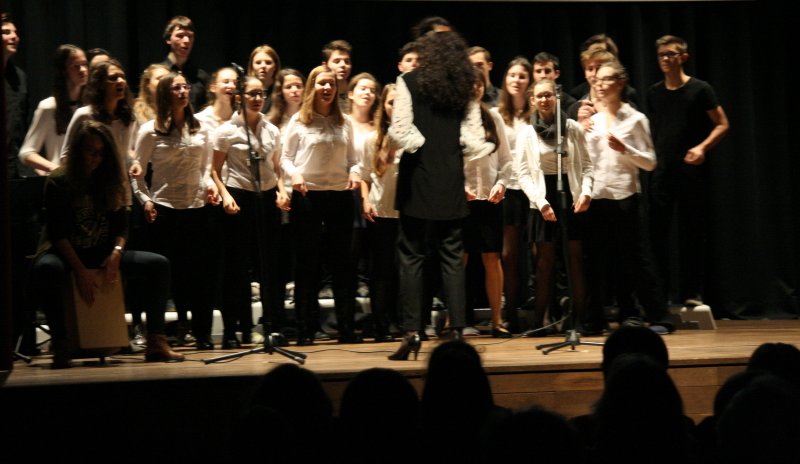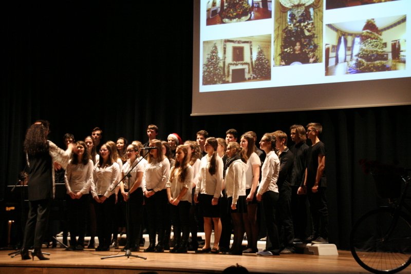 Letošnjo prireditev, na kateri smo počastili dan samostojnosti in enotnosti, nam je pripravil naš pevski zbor pod vodstvom profesorice dr. Marije Mihevc. Izvedli so imenitni koncert, s katerim so nas s pesmijo popeljali po celem svetu. Uživali smo ob njihovem zbornem petju in si na koncu, ko so odpeli Jingle Bells, zaželeli lepe praznike in srečno novo leto ter si priploskali dodatno pesem.