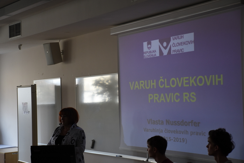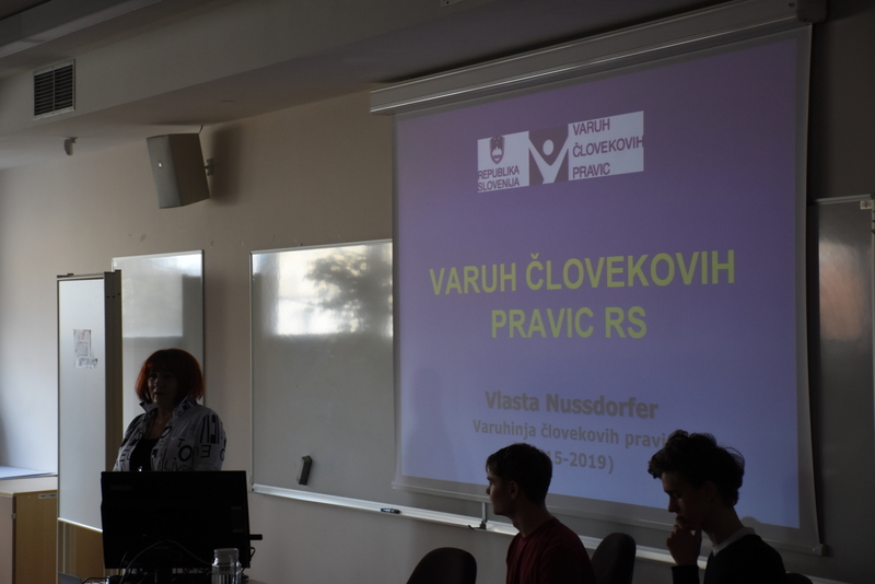 5. februarja 2020 nas je na šoli obiskala pravnica, zagovornica človekovih pravic, pisateljica in humanitarka gospa Vlasta Nussdorfer, ki je predstavila delovanje instituta Varuha človekovih pravic, katerega funkcijo je opravljala v obdobju od 2013 do 2019.