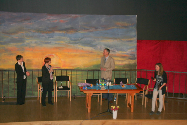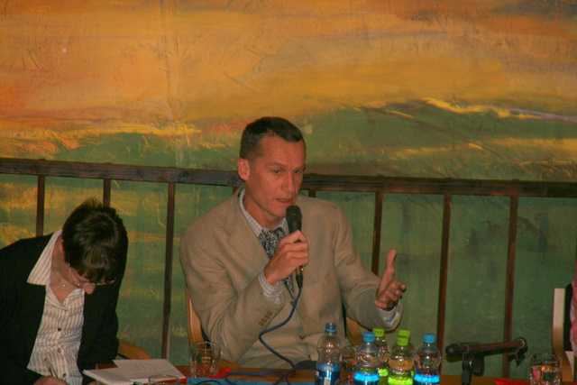Dijaki Gimnazije Vič so pod mentorstvom profesorice Jane Ozimek pripravili zelo lepo kuliso in izbrana vprašanja za imenitnega gosta. Uvodne besede je povedala prevajalka Francoskega testamenta, gospa Nadja Dobnik. Simultano je prevajala gospa Urška Planinšec. Pogovor je potekal v sproščenem vzdušju. Pisatelj je odgovarjal odprto, slikovito in duhovito, tako da je nekajkrat spravil publiko v smeh, kljub resni temi, ki jo obravnava roman.