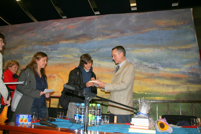 V četrtek, 22. 4. 2010, je bil ob 17.00 uri v dvorani Antonovega doma naš gost francoski pisatelj ruskega rodu Andreï Makine, avtor letošnjega maturitetnega romana Francoski testament.