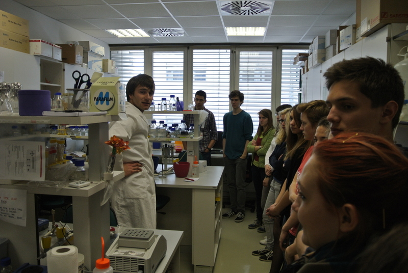 V okviru projekta Nova generacija raziskovalcev ved o življenju, so dijaki 3. letnika, ki so v skupinah izbirni predmet biologija in fizika, obiskali biotehnološki laboratorij na Kemijskem inštitutu v Ljubljani.