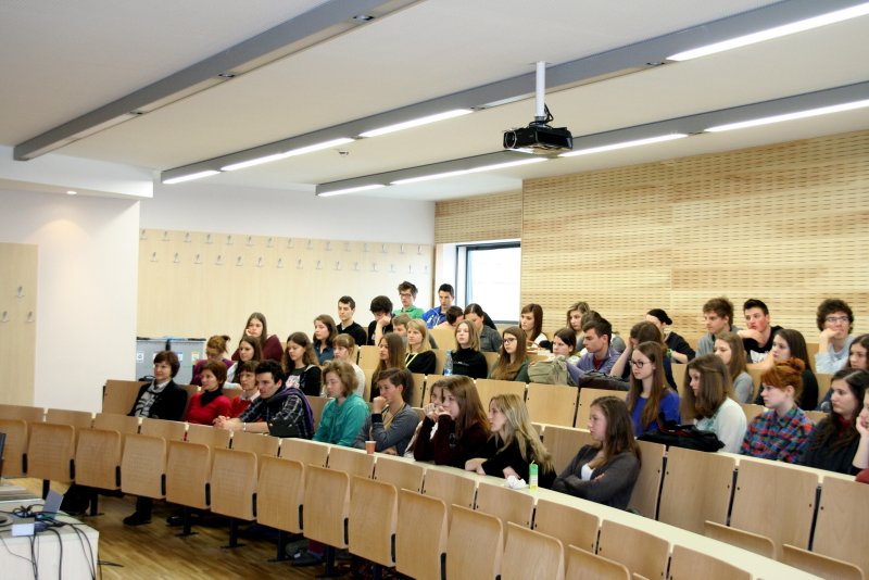 Srečanja s prof. Pibernikom se je udeležilo veliko četrtošolcev, pa tudi knjižnih zanesencev nižjih letnikov.