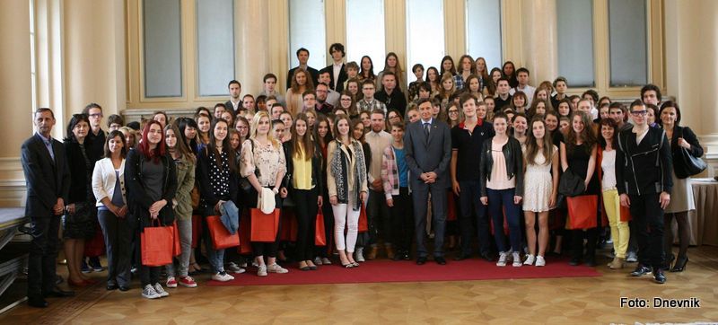 Ta nas je sprejel v kristalni palači, v kateri so nam družbo delali tudi trije izjemni dijaki – Miha Hrobat, svetovni mladinski prvak v superveleslalomu, Urban Stanič, ki je na evrovizijskem tekmovanju mladih glasbenikov v Kölnu dosegel drugo mesto, in Maruša Kerenčnik, dobitnica bronaste medalje na mladinski naravoslovni olimpijadi. Po uvodnem govoru predsednika države, je pogovor v svoje roke prevzel že prej omenjeni voditelj in vsem trem zastavil nekaj vprašanj, nekaj pa so jih na koncu dodali še mladi novinarji.