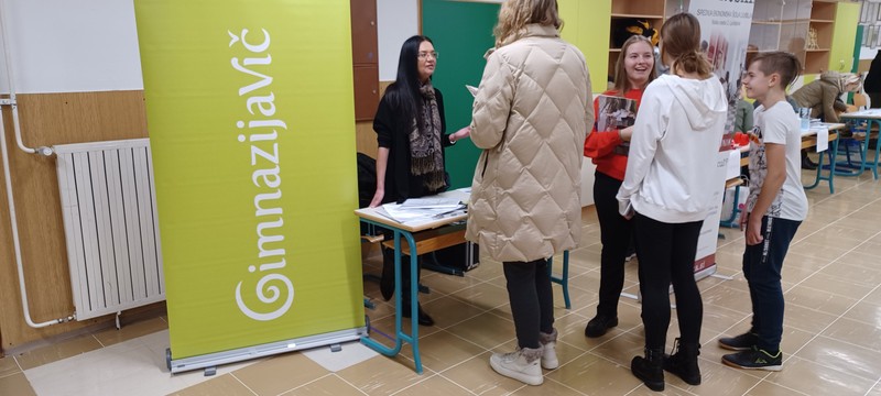 V torek, 29. 11. 2022 smo se predstavili na tržnici srednjih šol na OŠ Dobrepolje, v sredo, 30.11.2022, pa na OŠ Brinje, Grosuplje. Tržnice srednjih šol so ponovno zaživele in postajajo pomemben vir informacij za bodoče srednješolce. V naši ekipi so poleg učiteljev vedno tudi dijaki, bivši učenci osnovne šole, na kateri se predstavljamo. Na ta način bodoči dijaki dobijo priložnost, da nas, profesorje in dijake povprašajo o vsem, kar jih zanima o delu in življenju na Gimnaziji Vič. Ugotavljamo, da je zanimanje za našo gimnazijo veliko, da imajo učenci večinoma že precej informacij o naši gimnaziji, želijo pa še dodatne, podrobnejše odgovore o različnih področjih, ki jih zanimajo. Za napovedano ponudbo "Vičan za en dan" vlada izjemno veliko zanimanje, ker na ta način devetošolci dobijo priložnost biti en dan pri pouku v gimnaziji in se tako seznaniti z načinom in zahtevnostjo dela, z vzdušjem, z odnosi in medsebojno komunikacijo.