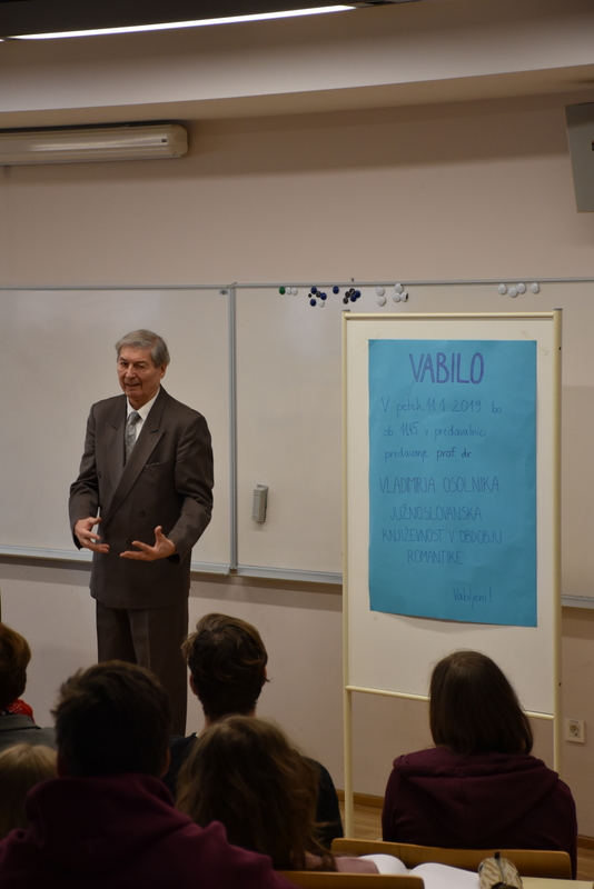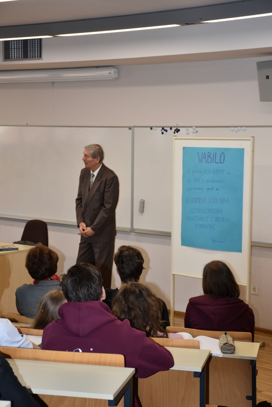 V petek, 11. 1. 2019, je bilo v naši predavalnici predavanje prof. dr. Vladimirja Osolnika o evropski romantiki ter južnoslovanski književnosti v tem času. Poseben poudarek je bil na delu Petra Petrovića Njegoša in povezavah s slovensko romantiko.