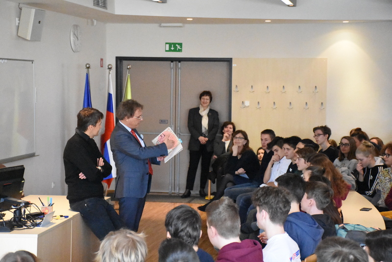 Avorja sta s svojim drugačnim, svežim in nenavadnim pristopom navdušila dijake 1. in 2. letnika. Igor Saksida je velik poznavalec sodobne glasbe. Za konec predstavitve je zarepal Prešernovo gloso, dijakinja Iša Strehovec pa je Gloso povedala na njen izviren interpretativni način. Najbrž bo marsikateri dijak, ki je bil na predstavitvi, prebral kakšno pesem več, kot bi jo sicer.