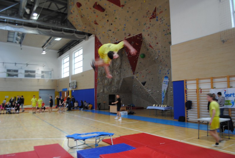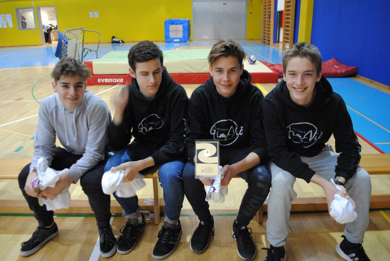 Našo gimnazijo so zastopali Kris Flajs 2a, Dan Troha 2e, Gregor Turk 1d in Jakob Udovič 4a. Tekmovalni program je sestavljalo 1 obvezni in 3 poljubni skoki, ki so bili opisani v pravilniku tekmovanja. Naši fantje, ki so odlični »skakalci«, so si že v šoli na treningih izbrali skoke z najvišjimi koeficienti težavnosti. Na tekmi so odlično opravili nalogo in zmagali pred 11 drugimi SŠ. Med več kot 50 posamezniki, pa je 2 mesto dosegel Gregor Turk 1d.