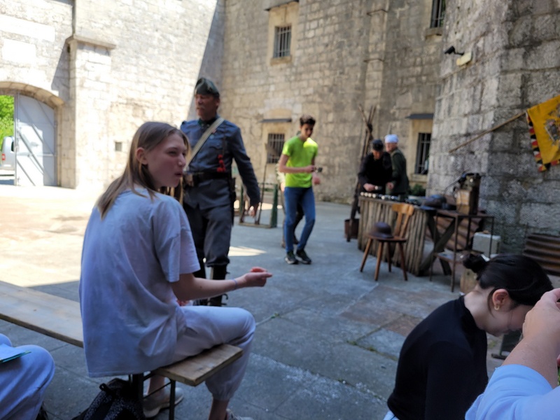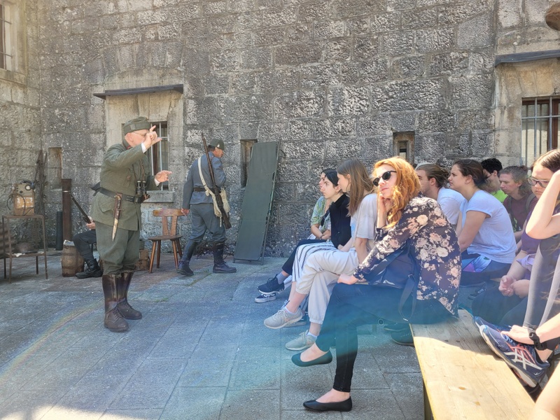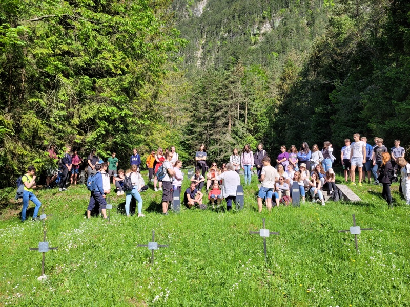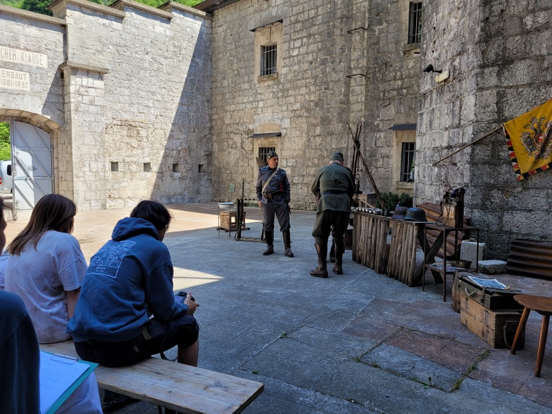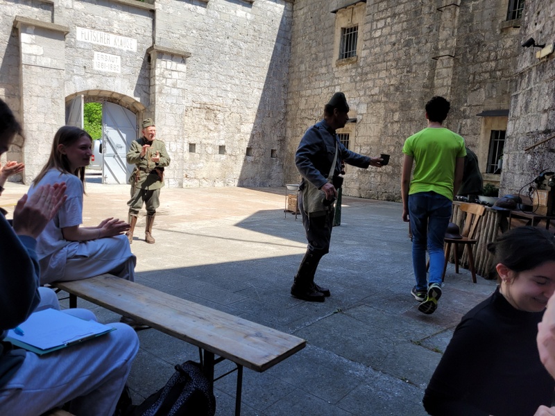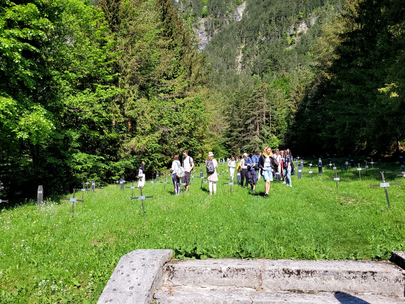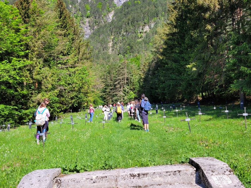 Kako so ljudje doživljali »veliko vojno« ter kje in kako je potekala soška fronta so dijaki tretjega letnika spoznavali na kraju samem: na vojaškem pokopališču med križi in nišani pod Rombonom, v trdnjavi Kluže, v muzeju v Kobaridu, na Kolovratu… usode mož, fantov, žena, mater, otrok.