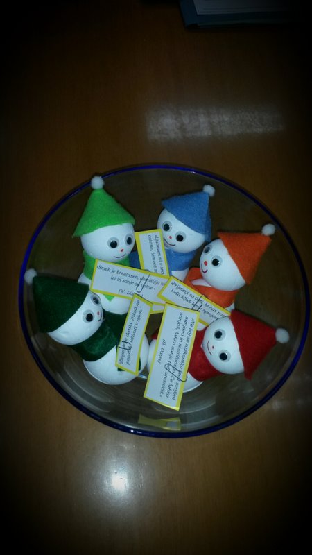 Z izvedenimi nastopi smo popestrili njihov vsakdan v bolnišnični oskrbi, seveda pa na obisk nismo hoteli priti brez praznih rok. V ta namen smo jim izročili darilo, snežene može z dobrimi željami, ki sta jih v mesecu novembru in decembru izdelovali dve pridni prostovoljki.