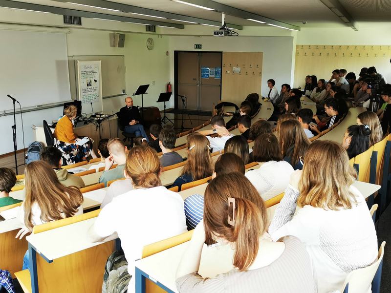 V sredo, 11. maja 2022, je bilo v naši predavalnici srečanje dijakov s s pisateljem in fotografom Dušanom Šarotarjem. Tema pogovora je bila sodobna slovenska proza, prekmurska pokrajina, bivanjska tematika in zgodbe prekmurskih Židov.