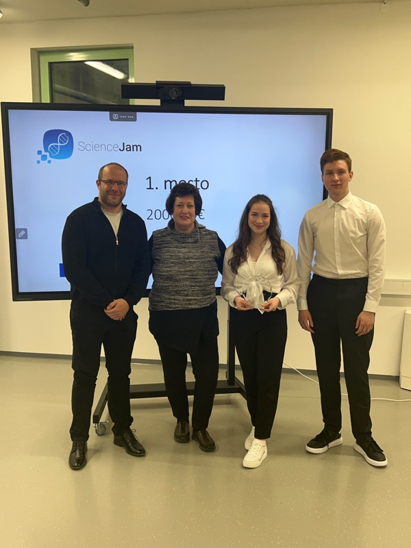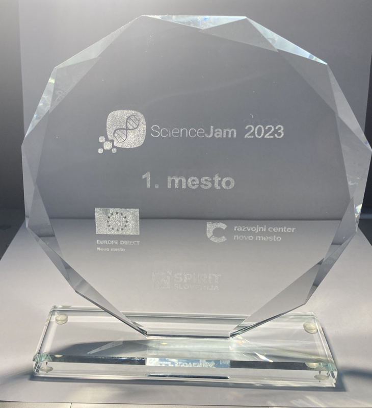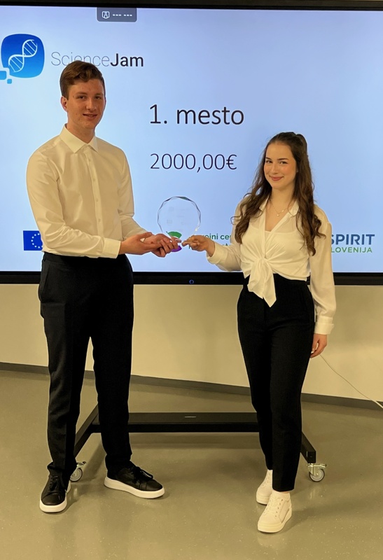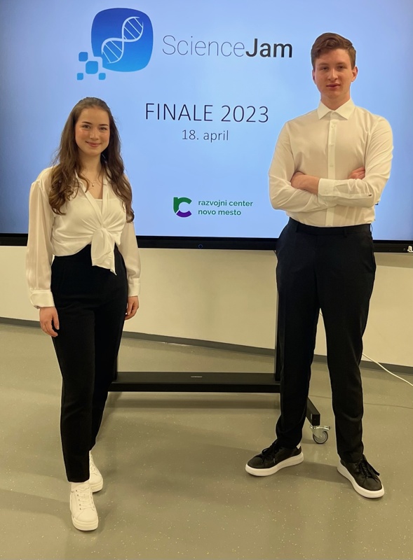 Ela Podboršek in Tim Strnad, dijaka 3. letnika, sva v torek, 18. aprila, v finalu tekmovanja ScienceJam 2023 (https://sciencejam.rc-nm.si/) v Novem mestu osvojila 1. mesto.