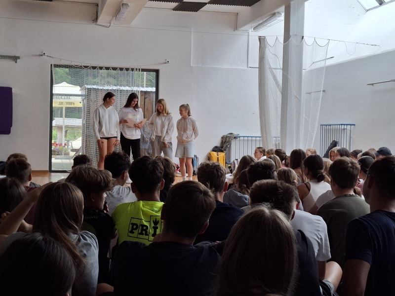 Tabor smo otvorili s čudovitim pohodom do znamenite Blejske koče na Lipanci, ki je leta 1978 iz pastirske koče prerasla v danes precej priljubljeno planinsko postojanko. Tudi sicer smo, v osrčju neokrnjene narave vasi Goreljek, uživali v številnih aktivnostih na prostem. Dijaki so skozi improvizacijske in sodelovalne dejavnosti urili koncentracijo, usklajenost in iskali strategije za rešitev zastavljenih problemov. Pomembno mesto na taboru pa seveda zavzema tudi njihovo umetniško izražanje, kjer so v okviru razrednega projektnega dela ustvarili pesmi, basni, maskote, dramatizacije in zemljevide ter posneli kratke filme. Kot se za spoznavni tabor spodobi, pa so ob večerih zagoreli tudi taborni ognji, s katerih je zadišalo po sveže pečenem kruhu, ki so ga zamesili dijaki sami.