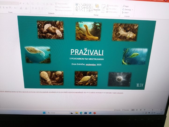 30. 9. 2025 smo imeli člani krožka GrinVič praktično delavnico "Zanimiv svet majhnih: praživali s poudarkom na migetalkarjih". Mag. Dren Dolničar (bivši GrinVič-kar) nam je najprej razložil najnovejša dognanja, potem pa smo se lotili še praktičnega dela in opazovanja teh majhnih organizmov.