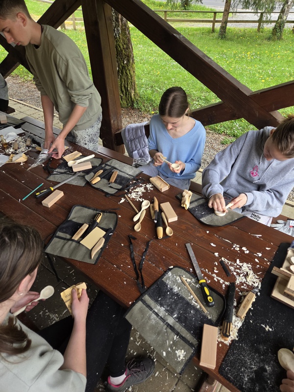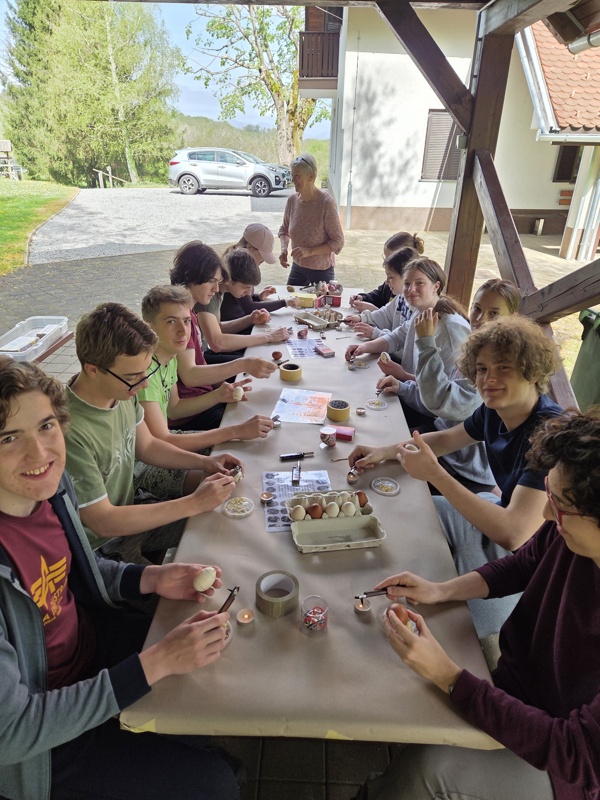 Tekom preostalih dni so se odvijale športne, kreativne, rokodelske in povezovalne aktivnosti - izdelovali smo pisanice in lesene žlice, se preizkusili v kreativnem pisanju in vezenju, pripravili taborni ogenj in si spekli večerjo, s kolesi raziskovali bližnjo okolico, igrali družabne igre in preverjali svoje znanje ob zabavnih kvizih. Tabor smo zaključili s spustom po nekoliko narasli in hitrejši Kolpi in užili še malo spomladanskih sončnih žarkov.