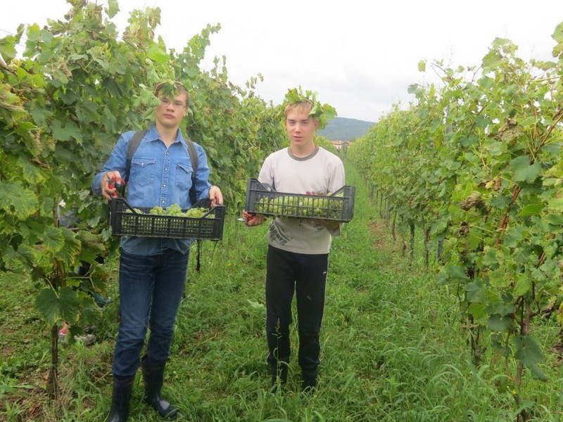 Po prihodu v Hortikulturni center smo si takoj zavihali rokave in pričeli s trgatvijo v ampelografskem vrtu v Kromberku pri Novi Gorici. Ko smo tam z delom končali, smo se vrnili nazaj v Orehovlje ter se odpravili v vinograd blizu stavbe, v kateri smo prebivali. Poleg grozdja smo nabirali tudi jabolka in v rastlinjaku sadili solato.