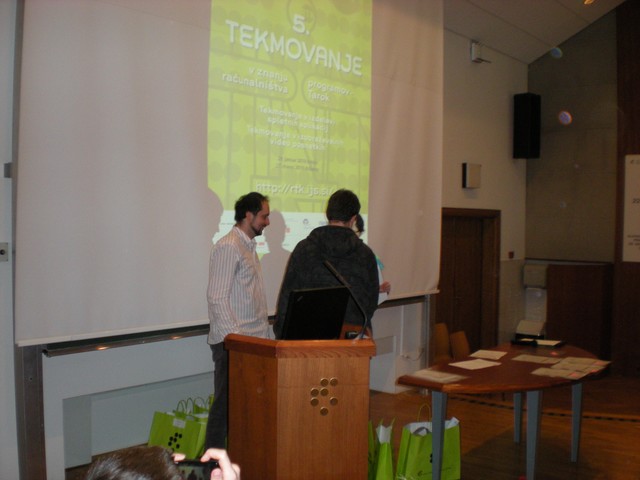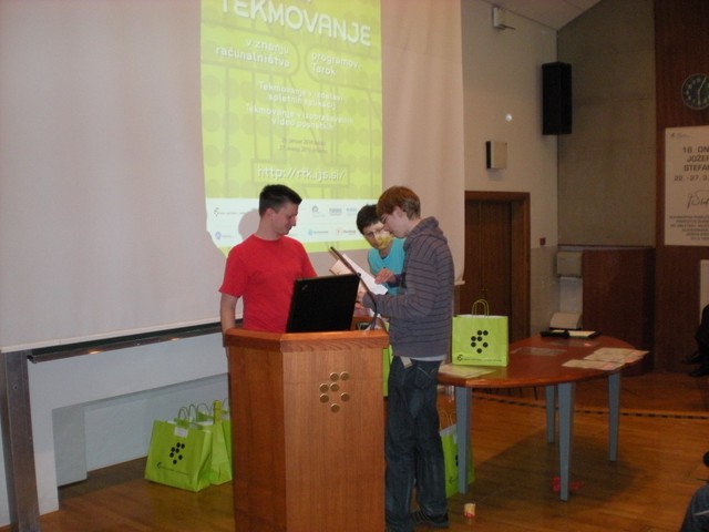 Medtem ko je komisija zavzeto popravljala naloge, smo lahko udeleženci poslušali zanimiva predavanja. Sledila je razglasitev rezultatov in podelitev nagrad za najboljše, ki so bile kar bogate. Tudi mi smo bili uspešni, saj smo osvojili kar 5 nagrad: