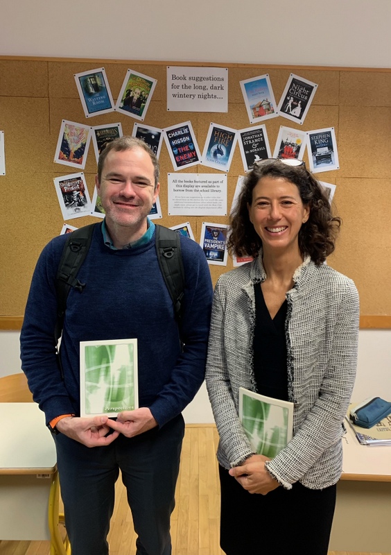 Dijaki so ju popeljali na kratek ogled šole, nato pa sta prisostvovala pouku angleščine, kjer sta imela priložnost slediti obravnavi teme 'pomen izobraževanja in izobraževalni sistemi'. V zelo zanimiv razgovor, ki je v veliki meri temeljil na izmenjavi in argumentaciji mnenj, sta se tudi sama vključila in z dijaki delila svoje izkušnje ter splošno znanje s področja ameriškega izobraževalnega sistema. Druženje je bilo zelo poučno in prijetno; ob koncu so dijaki gostoma izročili tudi izvod najnovejše publikacije izbora najboljših prispevkov dijakov Gimnazije Vič na področju kreativnega pisanja v angleščini.