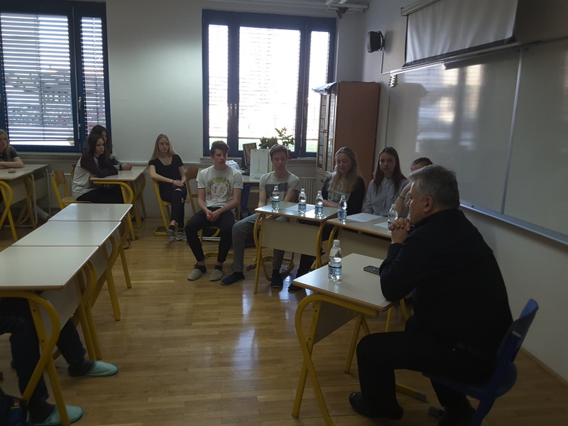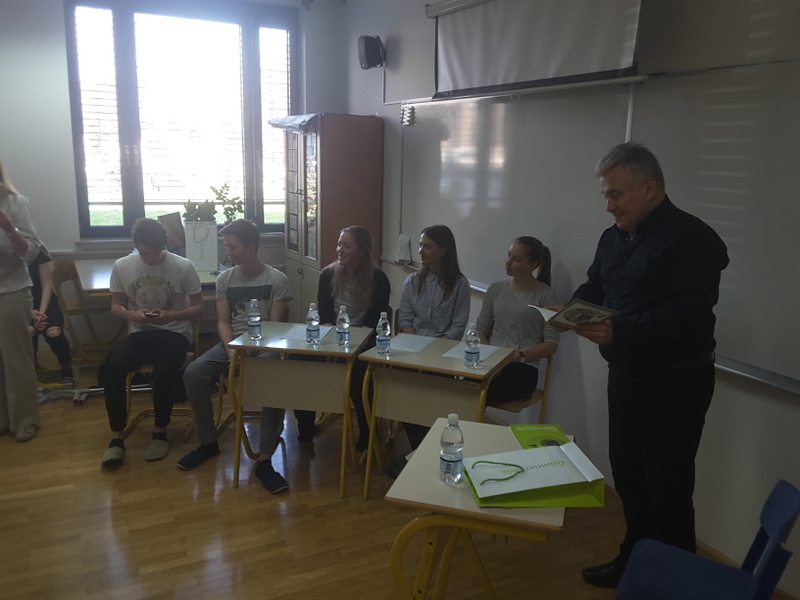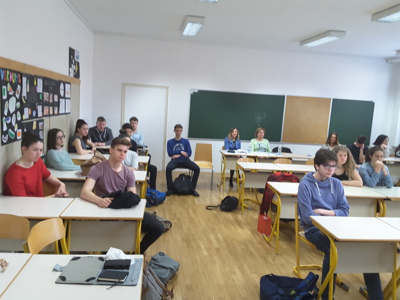 V petek 31.3.2107, so dijaki 2.b, ki sodelujejo v projektni skupini, pod mentorskim vodstvom Maje Gerden in Sonje Artač izvedli vzorčno uro, ki sta ji prisostvovali dr. Amalija Žakelj, koordinatorica projekta za našo gimnazijo in dr. Brigita Rupar, predstojnica OE Ljubljama, ZRSŠ. Tema ure je bila intervju z znanim podjetnikom (podjetniški izziv: Moj junak). Dijaki in mentorice so v goste povabili doc. dr. Miomirja Kneževiča, direktorja firme Educell, d.o.o., podjetje za celično biologijo. Pogovor na temo podjetništva je potekal v angleškem jeziku. Dr. Kneževič je dijakom predstavil svojo poklicno pot raziskovalca in podjetnika s področja dela in ravnanja z matičnimi celicami.