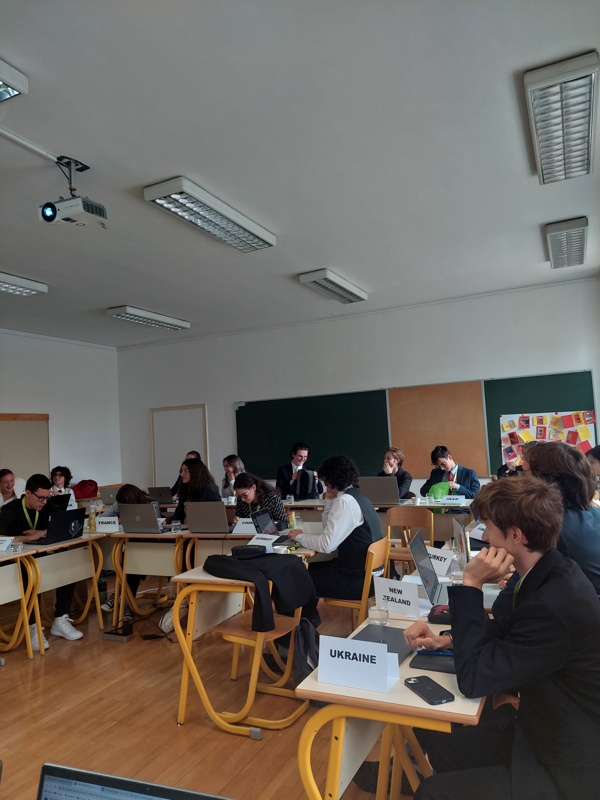 Varnostni svet je debatiral na temo globalnih problemov kibernetske varnosti. Predsedovali sta mu Lana Savanović, dijakinja četrtega letnika in Nadja Šarić, ki je lansko šolsko leto na naši šoli maturirala. Delegati so sodelovali pri ustvarjanju skupne resolucije, pod vodstvom delegacij Francije in Gane.