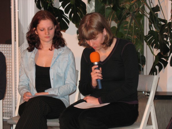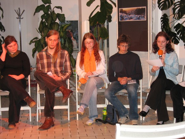 V prijetnem okolju knjižnične dvoranice so nam brali svoja in besedila svojih sošolcev: Mojce Leskovec, Barbare Tvrdi, Nike Remc, Simona Pirša, Urške Bradeško, Barbare Bizjak, Tima Ušiča, Gašperja Jakovca, Barbare Čepon in Roka Dovjaka.