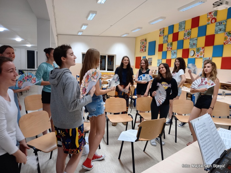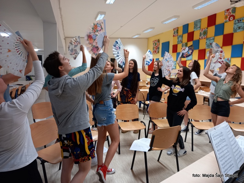 Šolsko leto 2021/2022 zborovskemu petju zaradi koronskih omejitev ni bilo naklonjeno. Pravzaprav je petje resnično zaživelo šele v mesecu marcu, ko so se ukrepi razrahljali in smo končno lahko sneli obrazne maske. Kakšno veselje je bilo v polnosti slišati pevske glasove in videti razigrane, sijoče obraze! Z dekleti smo se sredi meseca maja odpravile na intenzivne vaje na Debeli rtič, kjer smo pridno vadile, sestavljale koreografije in se pripravljale na koncert.