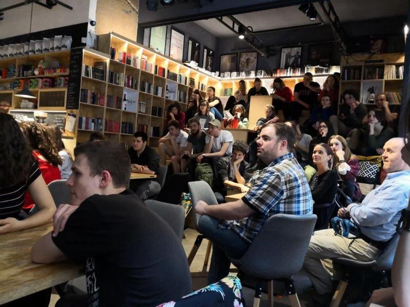 After a delicious lunch during which we got to sample some local cuisine, the full group met with other students of the host school to attend this year’s closing ceremony. Instead of having it within the school as has been usual over the past few years, the decision was made to reserve a bookshop-café in Budapest. This fantastic idea allowed us to explore a new location that provided a perfect spot to enjoy refreshments and hear some of the work performed in a space especially designed for presentations and performances.