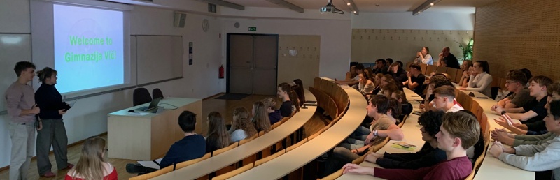 The main introduction for our guests was a presentation given by members of our school’s promotions group. Here they learned about what school is like in Slovenia as well as some general things about our country such as traditional foods. There was a chance for a bit of a discussion as well in which students from both schools gave their opinions about issues of daily life as a student including dealing with timetables, the food available in schools, and how different interests and passions can be encouraged within the education system.